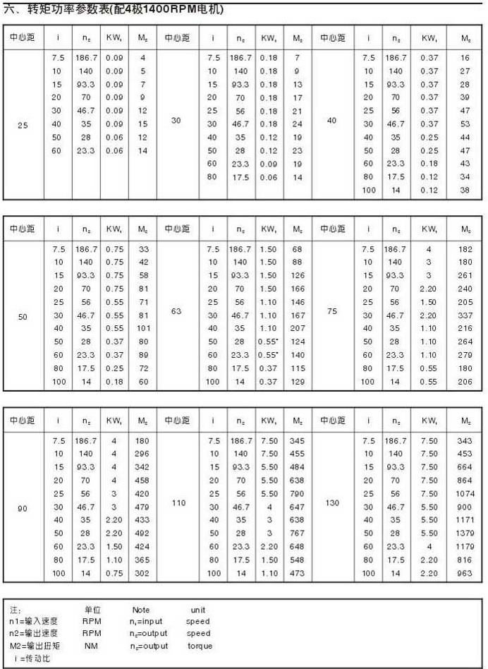 轉矩功率參數(shù)表(配4級1400RPM電機)