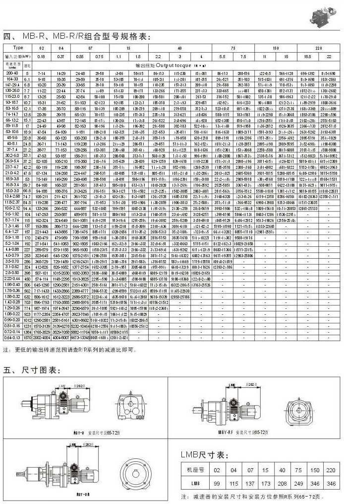 MB-R,MB-R/R則和型號規格表尺寸圖表