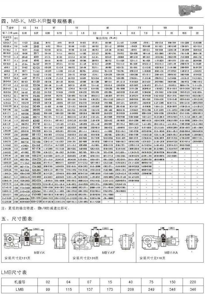 MB-K , MB-K/R型號規格表尺寸圖表LMB尺寸表