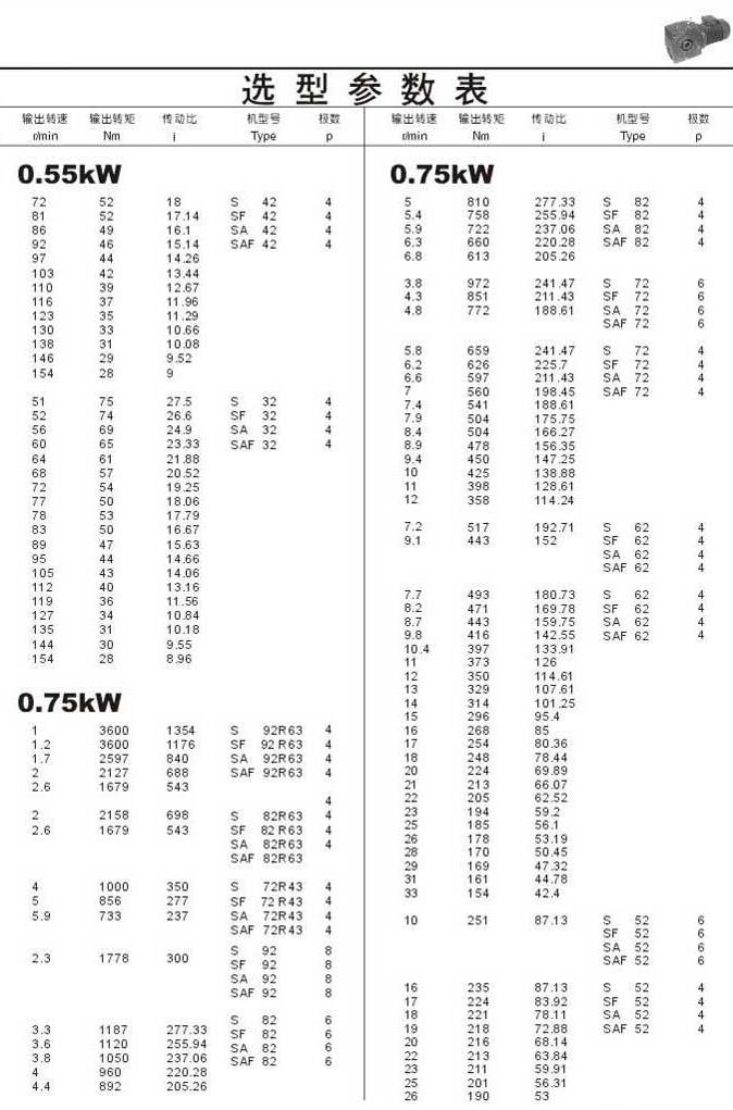 選型參數表0.55kW(續)和0.75kW